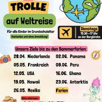Die Trolle begeben sich auf eine Weltreise und werden viele tolle Sachen erleben! DU willst auch dabei sein? Dann komme dienstags 15.30 Uhr an die Bergkirche und steig mit in den Flieger!